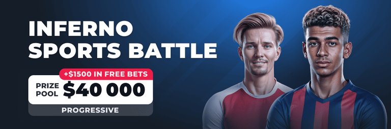 Feel your inner fire! Join the Inferno Sports Battle from September 5 to September 19. Place bets and compete for the $40 000 progressive prize pool. Only the bold will stand in the flames of profit!